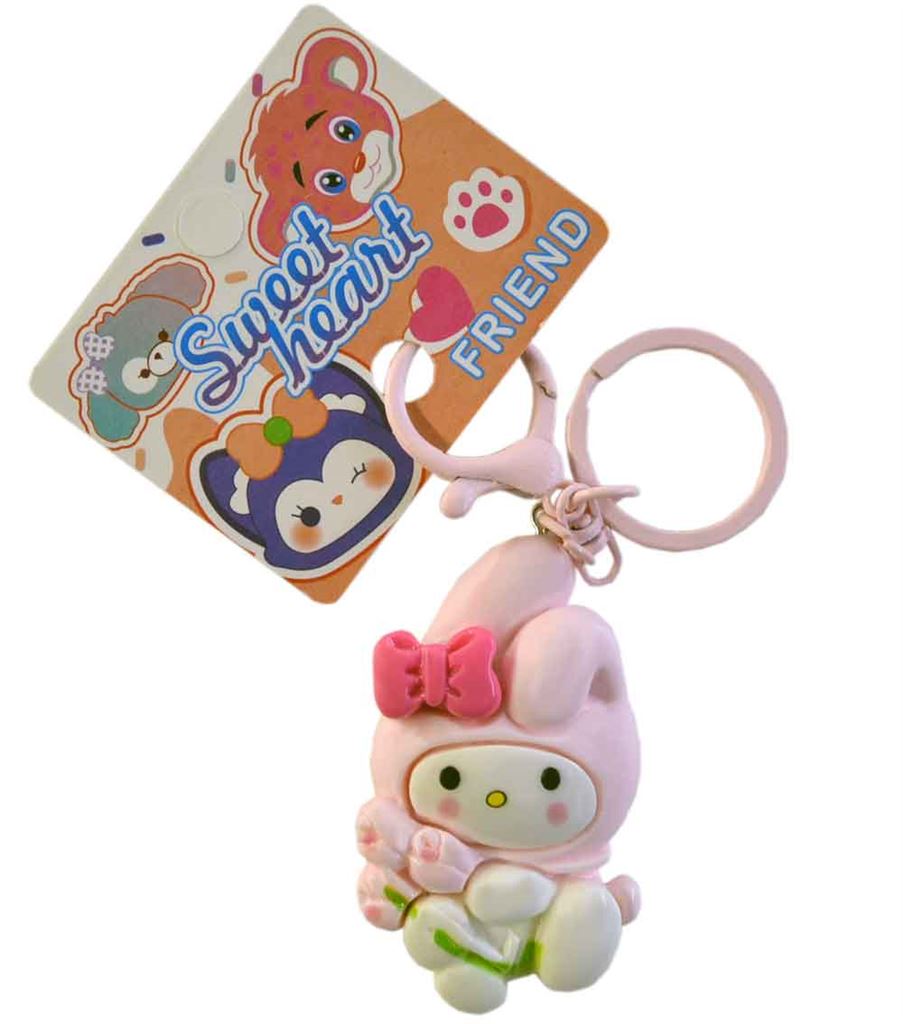 Брелок 25-1-488-10 пласт односторонний с ручкой Зайка с букетом (199)