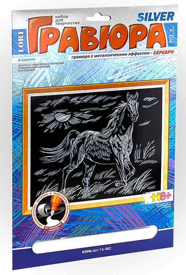 Гравюра с эффектом серебра "Конь" Гр062